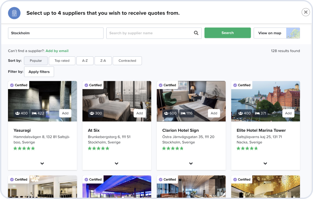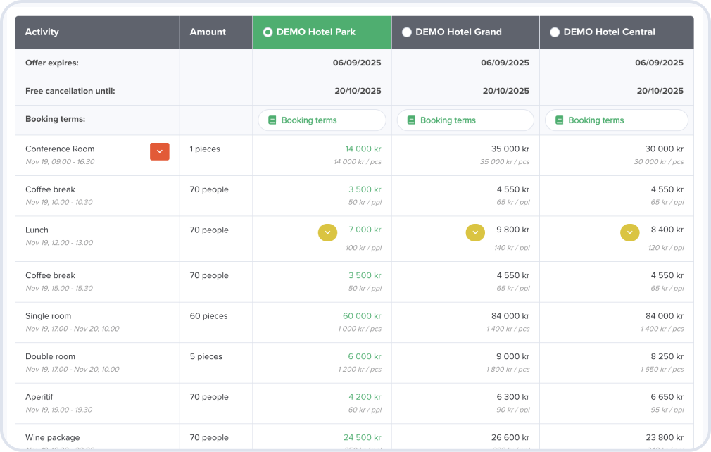 Samla snabbt och enkelt in jämförbara offerter till nästa möte, event eller konferens.