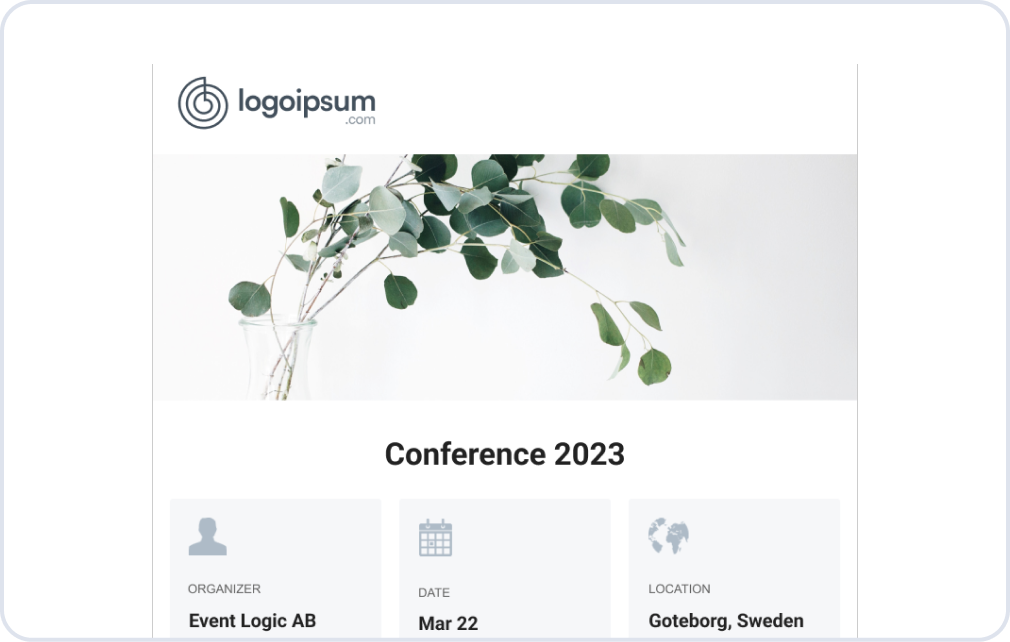 Designa din inbjudan och skicka till deltagarna. Skräddarsy ett anmälningsformulär med egna frågor, skicka påminnelser och dela deltagarlistan med leverantörer.